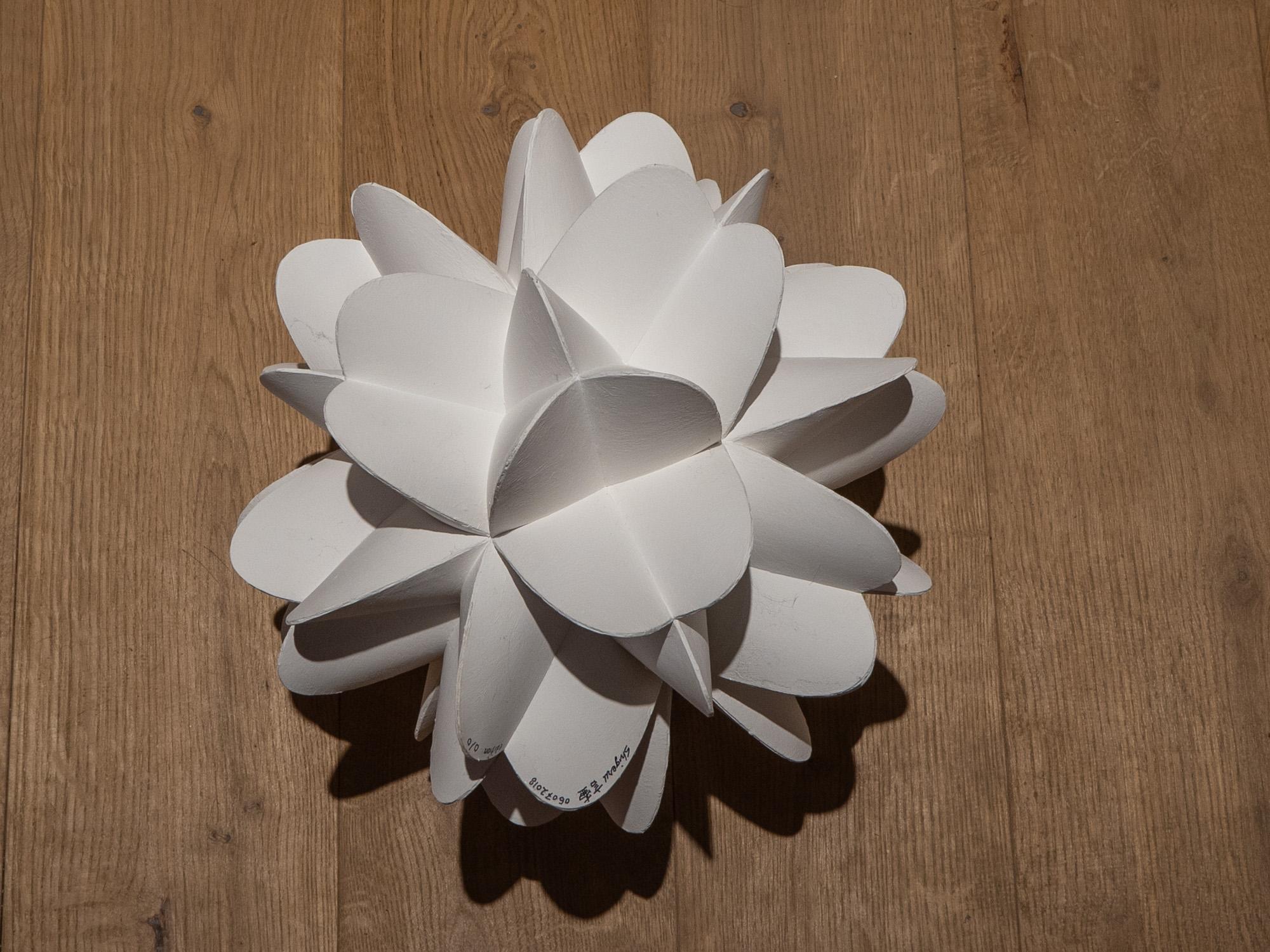 Durante i giorni di residenza, Shigeru realizza Kotodama 2018 – tradotto dal giapponese in Spirito della parola. L’opera scultorea in carta, ricoperta di gesso, custodisce al suo interno i pensieri dell’artista, una segreta confessione redatta nella città di Cosenza . La scultura, che rappresenta la mente dell’artista stesso, è un invito all’osservatore a conoscere lo spirito dell’autore.