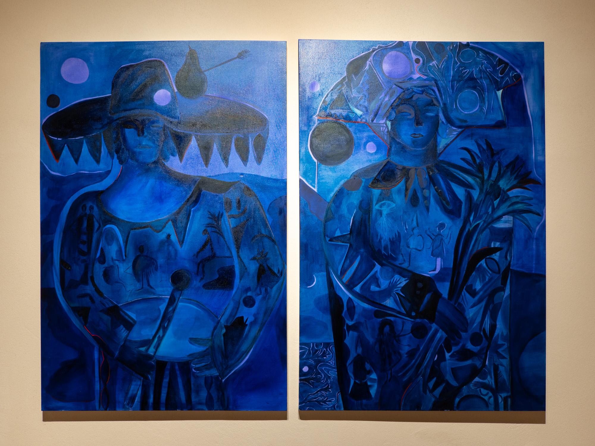 er i BoCs Art Alice Visentin ha deciso di produrre un lavoro di “riduzione”, optando per un formato molto più piccolo di quello usato abitualmente e per la stesura di un unico colore: il blu di Prussia.