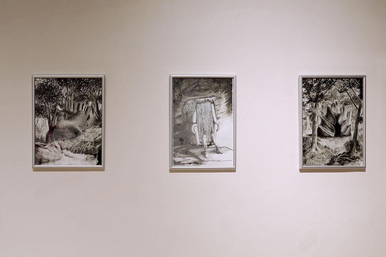 L’opera, composta da un trittico di disegni a china e una scultura/installazione, che prende il titolo Andromeda – omaggio ad Angelo Fasano , accompagna la performance dell’artista: una lettura di poesie dello scrittore cosentino e dell’introduzione del libro Il profumo del tempo di Byung-Chul Han, filosofo coreano, mettendo a fuoco una riflessione sulla necessità di fermarsi.
