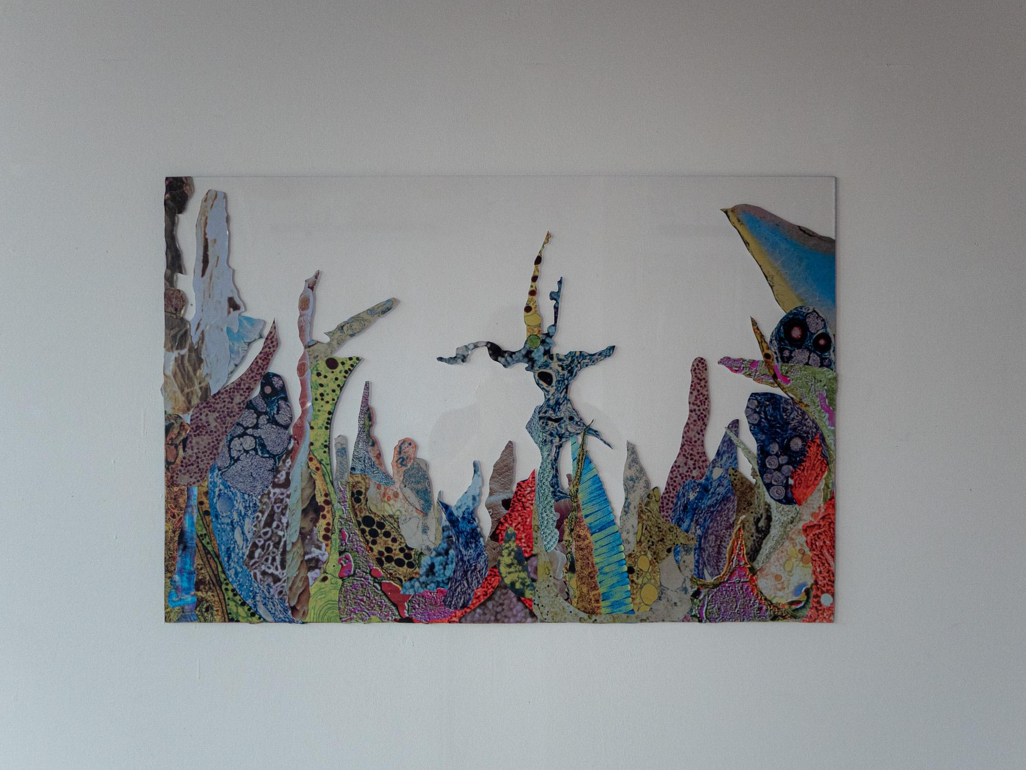 Il progetto per la residenza Bocsart, parte da un archivio di immagini istologiche che diventano stickers. Applicati sulla vetrata del box si trasformano in una barriera corallina immaginaria, segnando una separazione naturale. La composizione è visibile solamente entrando nello spazio fisico del box, un invito quindi ad uno sguardo intimo, interiore. Nello spazio sono presenti anche sottili sculture in fimo, mappe geografiche reali che modificate perdono la propria identità per divenire elementi di un paesaggio interno, frammenti di un unico organismo.