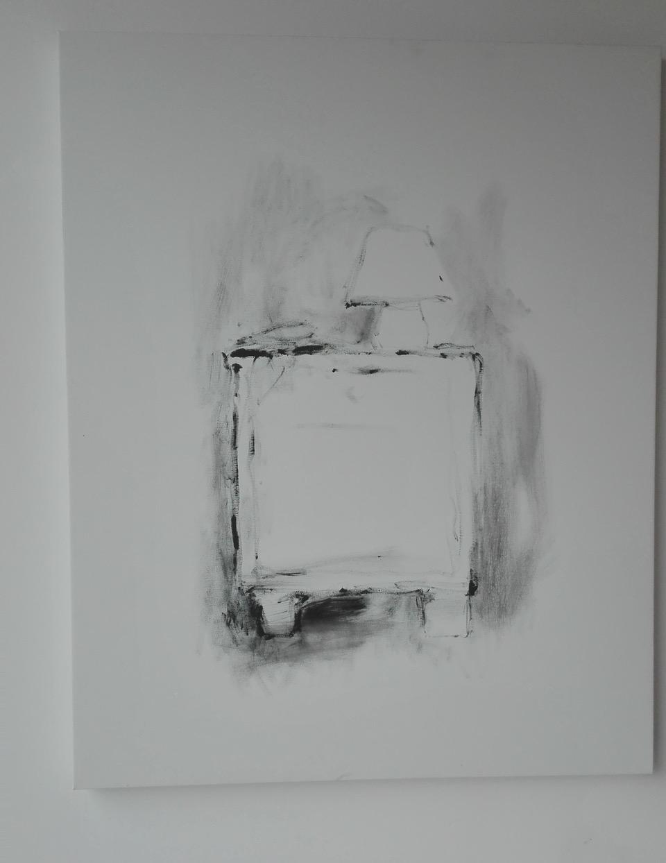 L’opera di Marina Buratti ruota attorno a un concetto chiave: la memoria. Per l’artista la memoria è sintesi, dunque non può esprimersi se non con il disegno che è quanto di più astratto possa esistere. Uno dei testi di riferimento dell’artista è Degas danza disegno di Paul Valéry in cui viene indagata la figura di Edgar Degas, l’unico tra gli Impressionisti a utilizzare ancora il disegno, inteso come “la particolare alterazione che la maniera di vedere e d’operare d’un artista fa subire alla raffigurazione esatta degli oggetti”. Il disegno dunque viene adottato da Buratti per la sua velocità d’esecuzione che permette di fissare dei ricordi. Questi poi si esprimono attraverso degli oggetti dai contorni sfumati e neri che richiamano la malinconia provata di fronte al tempo passato e quindi perduto. Percorrendo i vicoli di Cosenza vecchia con i suoi palazzi abbandonati, l’artista ha riportato alla mente il concetto di casa come luogo di presenze, così come lo aveva pensato Virginia Wolf e ha cercato di catturare le frequenze che aleggiano nella città ancestrale, realizzando una sintesi emozionale. È così che sono nati dei disegni dai soggetti differenti: pentole, scatole, figure umane, borse, panchine, ecc che sono solo dei pretesti per raffigurare delle emozioni. I disegni in cui l’artista ha inserito invece i colori risultano essere più astratti. La tela donata al museo fa parte della serie Frequenze-memorie e raffigura un comodino con degli oggetti al di sopra, tra i quali si riconosce subito una lampada. La scelta del soggetto è legata a dei ricordi autobiografici, di fatti da bambina amava molto fermarsi a giocare tra il letto e il comodino nella stanza da letto. I suoi ricordi, ma anche i toni neri delle sue pennellate asciutte, sono stati risvegliati dalla passeggiata nel centro storico di Cosenza dove ha visto un palazzo incendiato dai toni neri e grigi e il nero delle finestre vuote senza telaio.