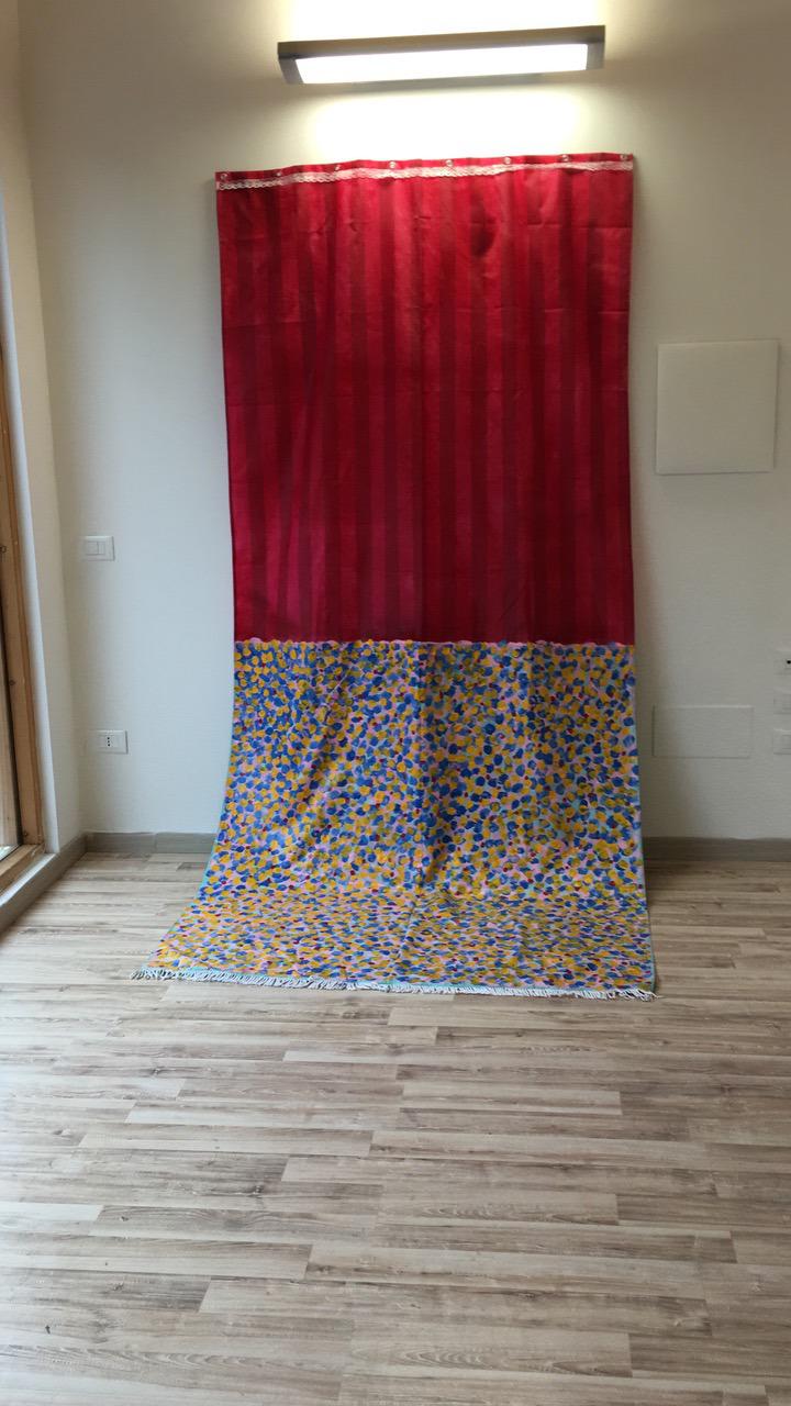 La ricerca artistica di Anna Colombi parte solitamente da un’immagine che può consistere in una foto scattata da lei stessa o in un particolare tratto da quadri già esistenti che rielabora, semplifica e rielabora sul grande formato. Ciò che le interessa delle immagini che la colpiscono sono soprattutto il colore e le sovrapposizioni cromatiche che le generano, mentre la forma non viene presa in considerazione. Ciò nonostante le sue opere non possono essere definite né informali-astratte, né iperrealiste, ma realizzano una mediazione tra i due concetti. La sua riflessione si concentra maggiormente sugli strumenti della pittura. Arrivata a Cosenza con un’idea di progetto totalmente diversa, l’ha rivista grazie alla frequentazione del centro storico della città, allo scambio di idee con gli altri artisti presenti in residenza e agli stimoli forniti dal paesaggio circostante. Di fatti, l’opera è intitolata Lungofiume.